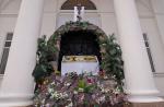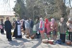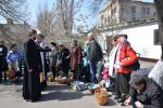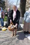 После окончания богослужения началось освящение пасок, пасхальных яиц и праздничных снедей для разговения в Пасхальный праздник. На фасаде Свято-Духовского кафедрального собора еще пребывает изображение Плащаницы, которое уже через несколько часов, к великой радости всех верующих, будет заменено на изображение Воскресшего Христа.