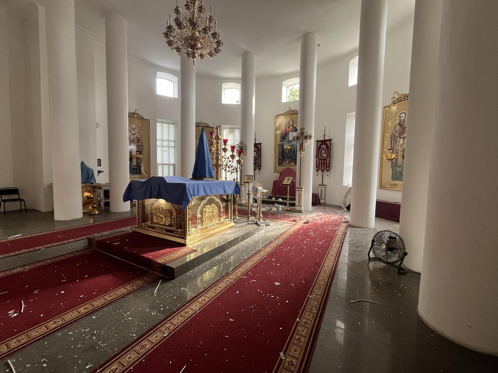 В ночь с 6 на 7 августа 2024 года, во время вражеского обстрела г. Херсон, два снаряда упали на территории Успенсого собора. В результате взрыва пострадала алтарная часть храма и подсобные помещения.